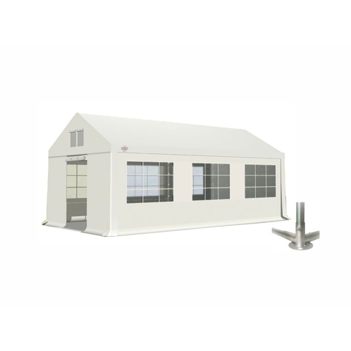 Met zijn gegalvaniseerde stalen frame en sterke PVC-doek van 1200N / 500 g/m² is deze tent bestand tegen intensief gebruik en vele weersomstandigheden.