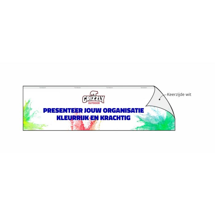 Je kunt de tent volledig laten bedrukken met de uitstraling, afbeeldingen, teksten én kleuren die bij jouw organisatie passen.